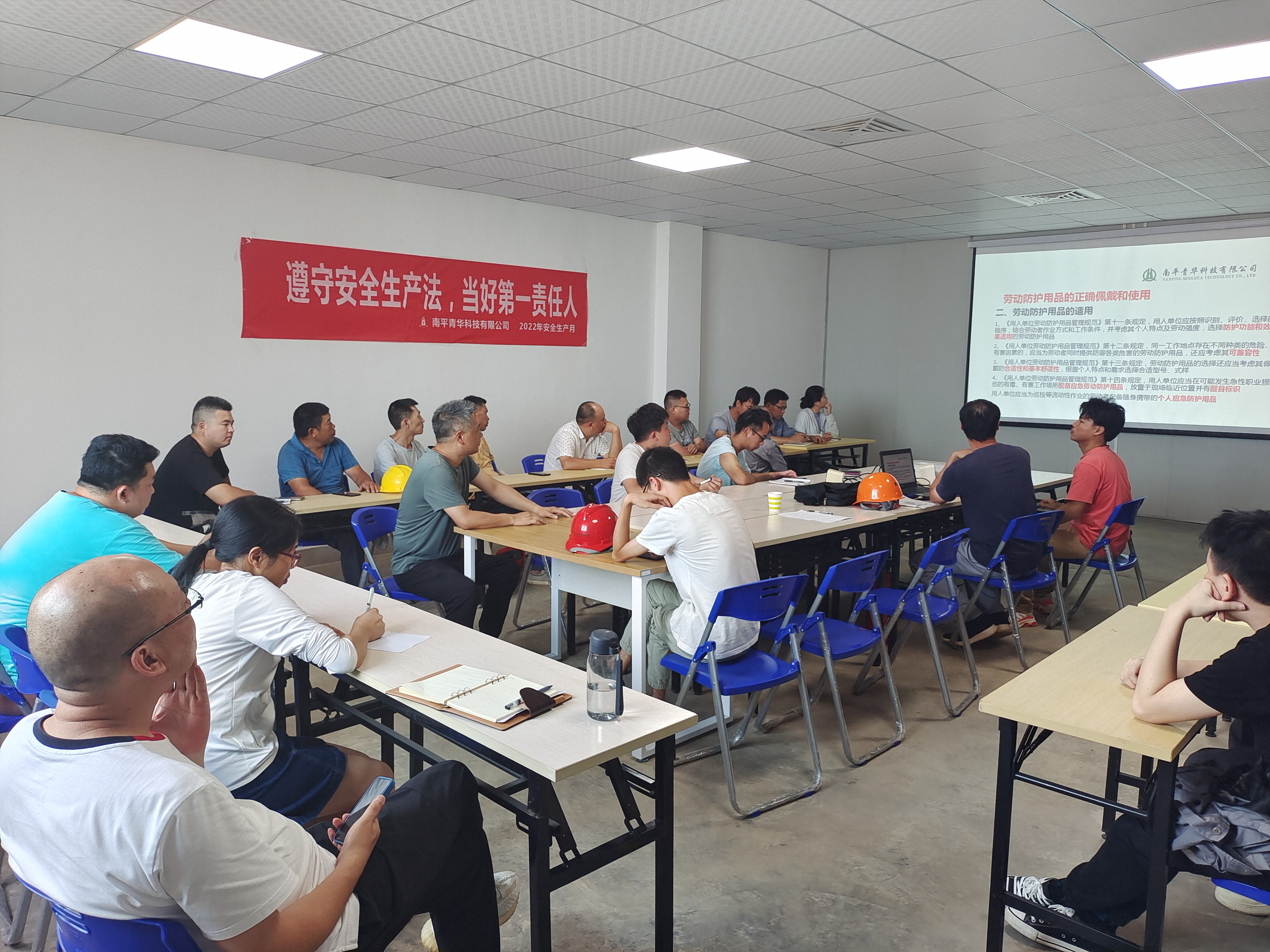 為了認真做好企業(yè)建設期安全施工管理工作,排除安全隱患,提高工作人員安全意識,并結(jié)合國家安全生產(chǎn)月的工作開展要求,公司在2022年6月28日、29日分別組織了兩場員工安全生產(chǎn)培訓,培訓主題為:“遵守安全生產(chǎn)法,當好第一責任人”。這次培訓內(nèi)容主要為:建設施工期高空作業(yè)、有限空間作業(yè)安全操作知識;施工現(xiàn)場各類氣罐安全使用要求;安全帽佩戴、滅火器使用現(xiàn)場演示;觀看安全生產(chǎn)教育視頻短片。
