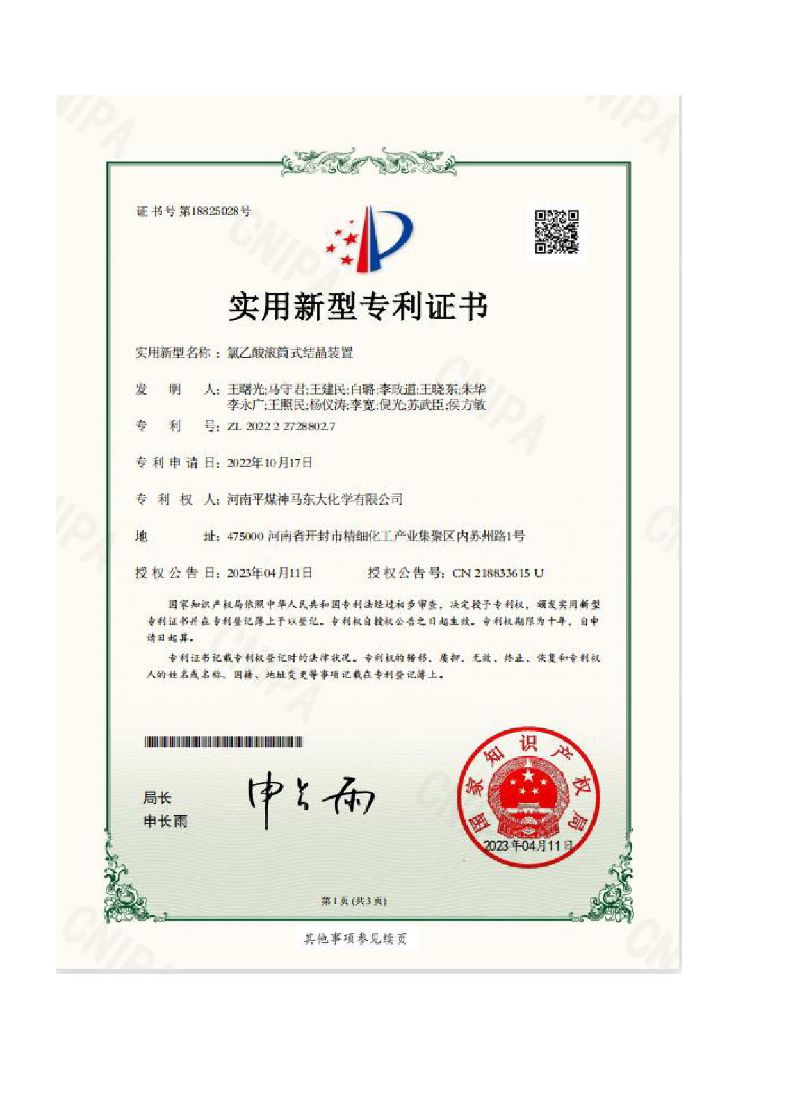 實(shí)用新型專利證書